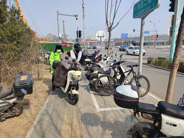 朝阳站办还联动朝阳区城管委、东风乡、平房乡以及共享单车运营企业,组建起联合共管运维专班,把力量沉到一线。每天15名运维人员、4辆调度板车、6辆转运三轮车驻场值守,随时清理淤积车辆、及时跨区调运;5名专职人员不间断规整摆放,不让车辆“扎堆占道”。与此同时,文明停车宣传展板醒目亮相,工作人员现场耐心引导,让“有序共享、文明停放”深入人心。