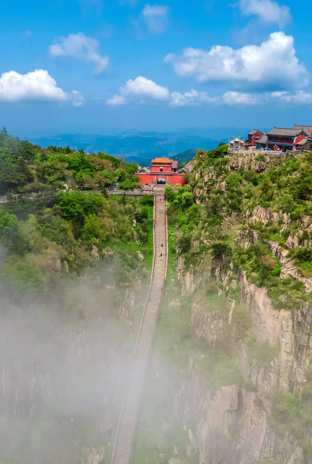 泰山作为世界文化与自然双遗产,其上有诸多古建筑,见证了时光的流逝和历史的变迁。
