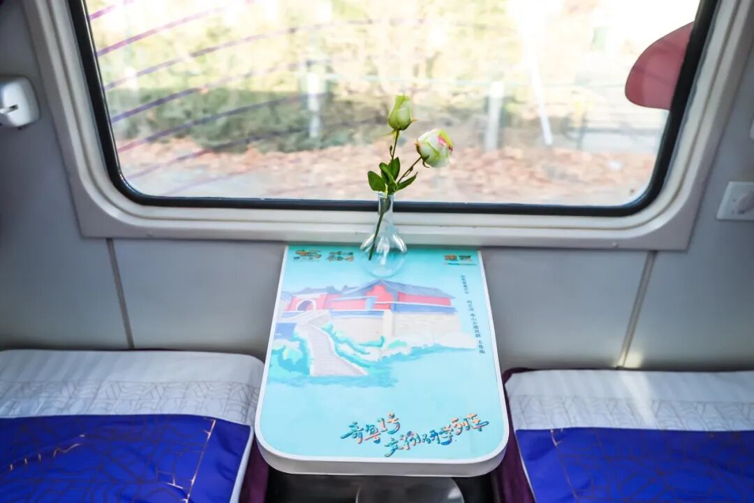 软卧车厢的主题为建筑。建筑作为不可移动的文物,以木材为骨,以砖石为肌,在飞檐斗拱之间,记录着齐鲁大地千年的风雨。