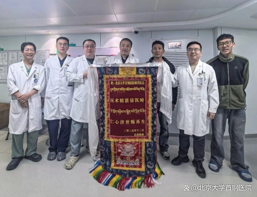 出院后,扎南一家为北京大学首钢医院医护人员赠送了饱含心意的锦旗和热情洋溢的表扬信。其中,锦旗本身就是一件艺术品,它的顶部环绕着洁白的哈达,底部点缀着五色绸缎,绚丽多彩、美轮美奂。锦旗上,用汉、藏两种文字书写着对顾晋及医护人员的真挚话语,金色丝线在深红绒布上闪闪发光。尤为特别的是,锦旗于西藏本地精心制作,由索朗占堆代表全家人赠予,在藏族同胞深厚的文化习俗里,敬献哈达和锦旗,是代表最高敬意、最深感谢的礼节。