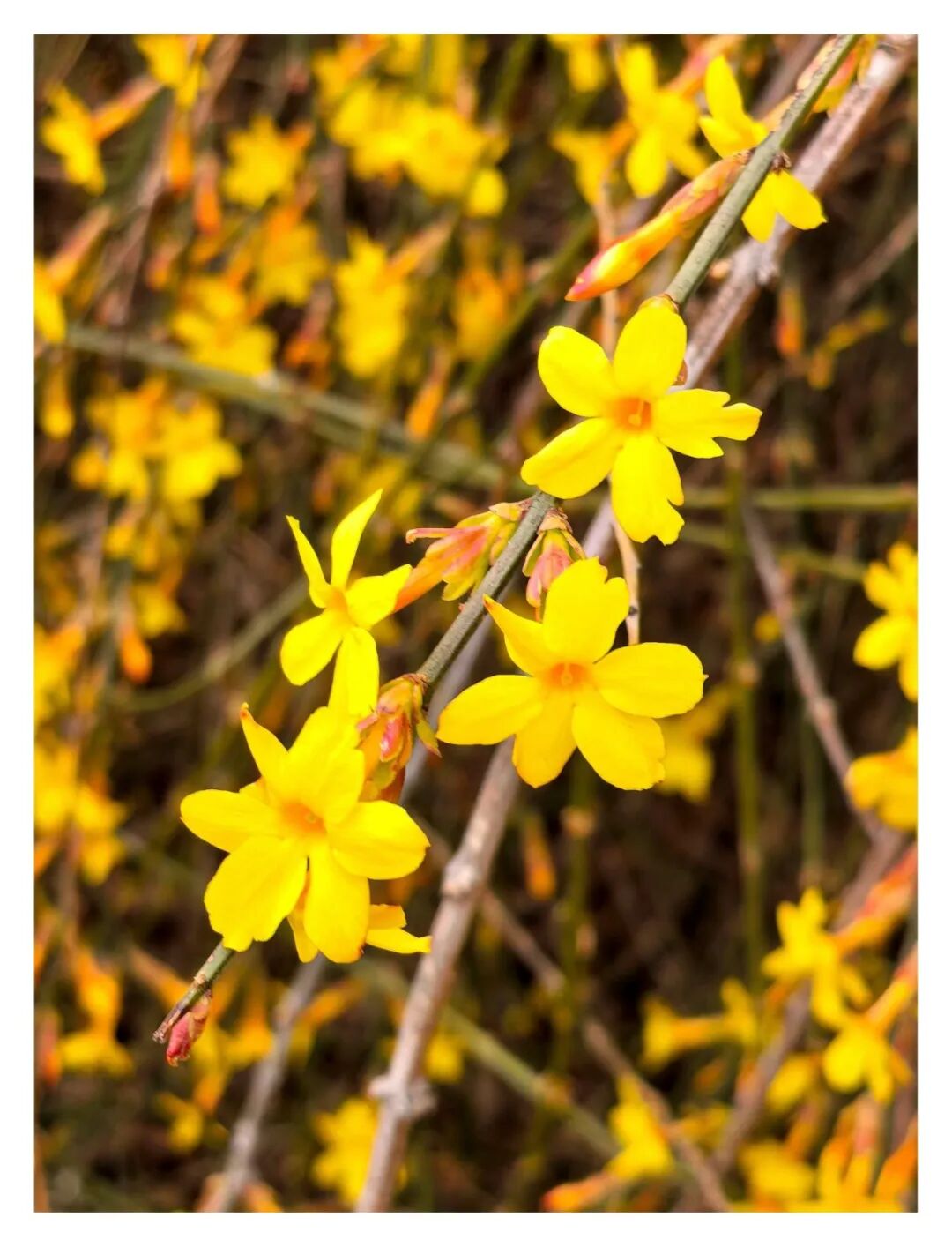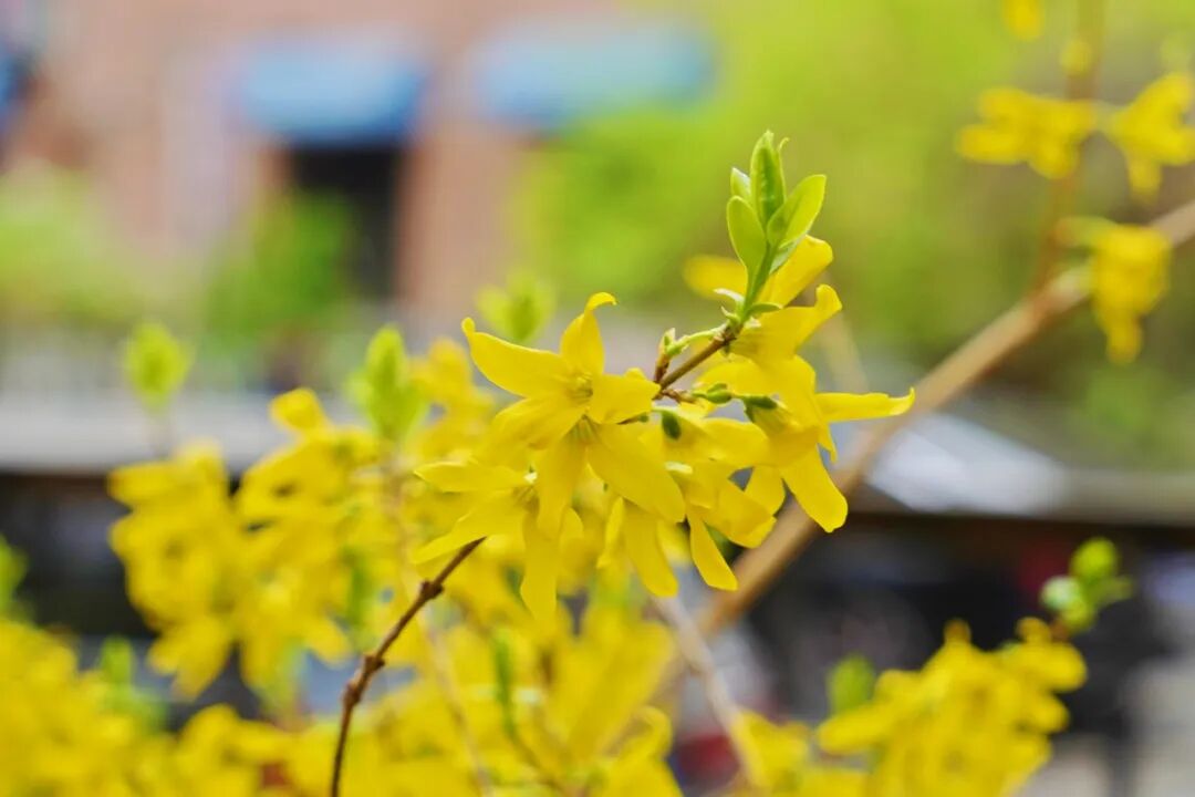 公园里的连翘与迎春花