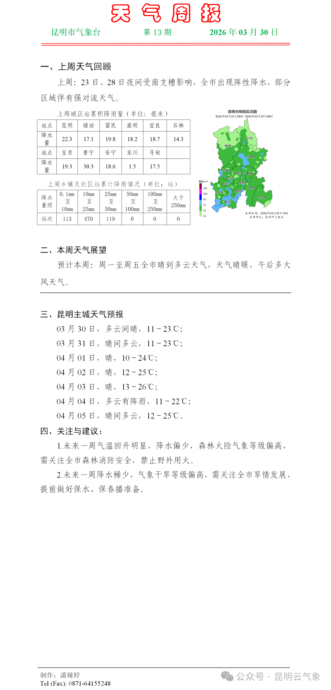 昆明天气周报