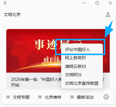 “最新活动”→“评议中国好人”