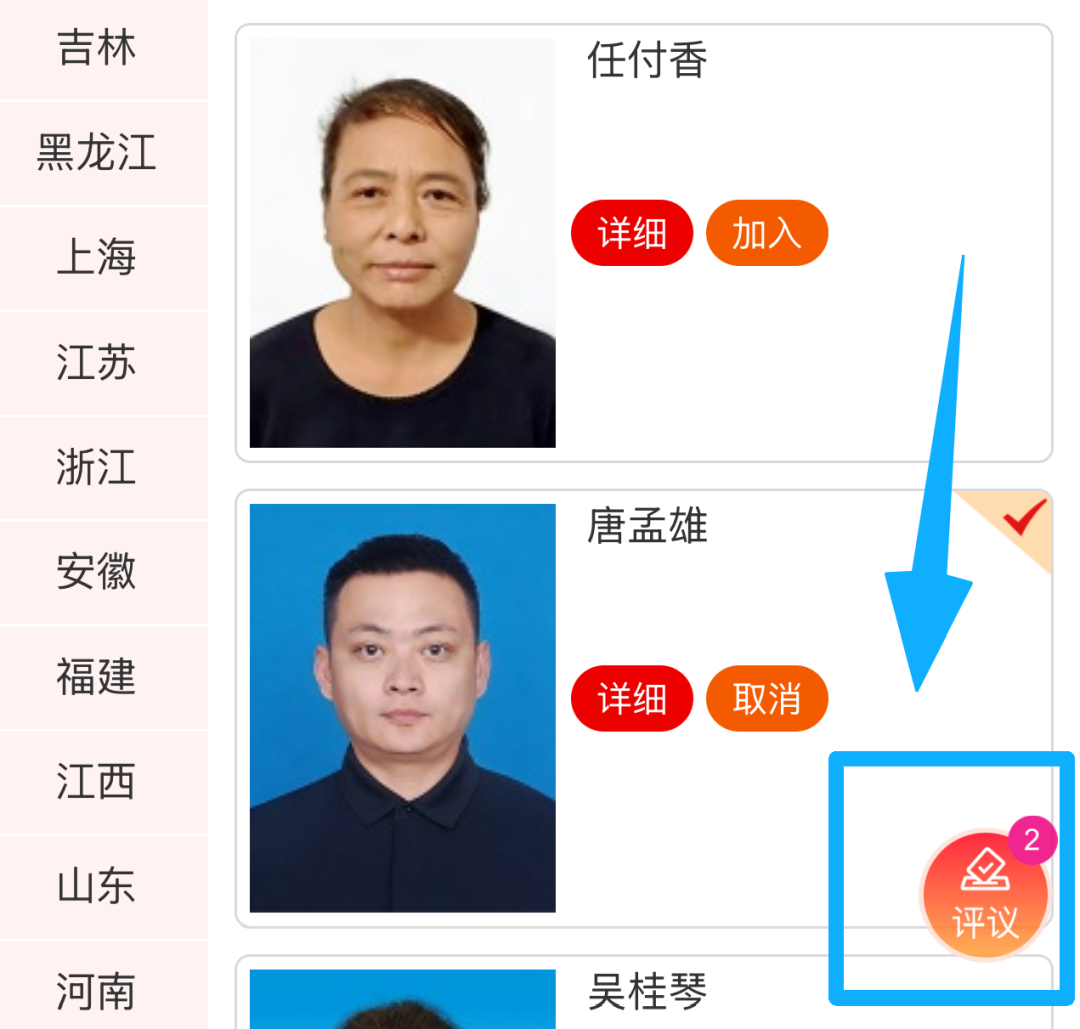 点击“评议”按钮