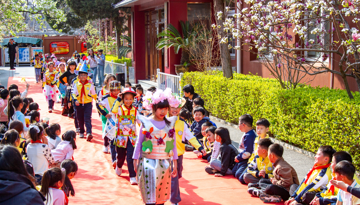 阳春三月,满树梨花雪。3月30日,一场别开生面的服装秀在北京市通州区南关小学上演,学生们在老师的带领下化身“小小服装设计师”“校园T台小模特”,把春花、绿柳、彩蝶“穿”在身上,共同装点色彩斑斓的春天。