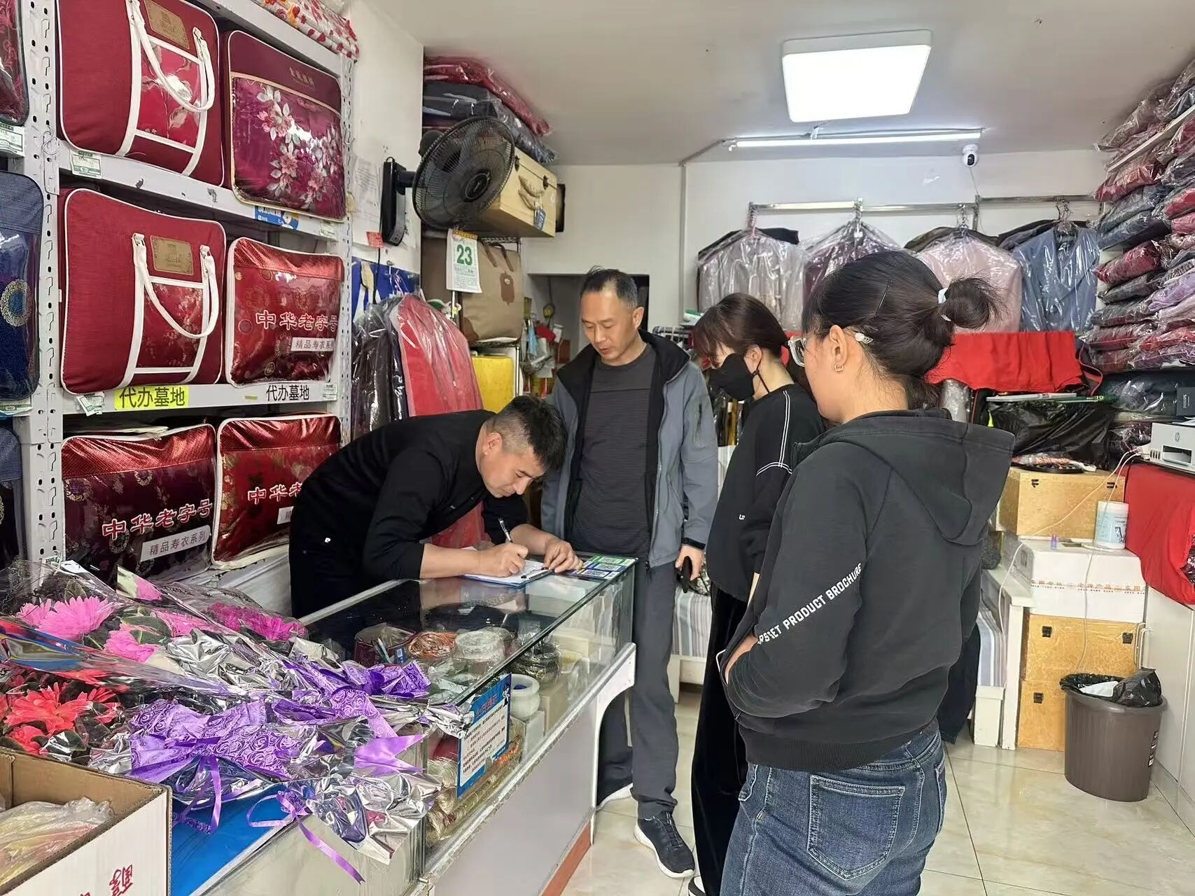 此次检查以辖区殡葬用品经营商户为重点对象,工作人员逐户走访、逐一核查,认真对照排查标准,细致查看店内陈列商品,重点检查是否存在销售封建迷信类殡葬用品,以及内容低俗、违背公序良俗的相关物品。