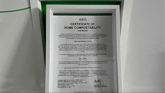 国际生物降解产品协会(BPI)为企业颁发的认证证书。