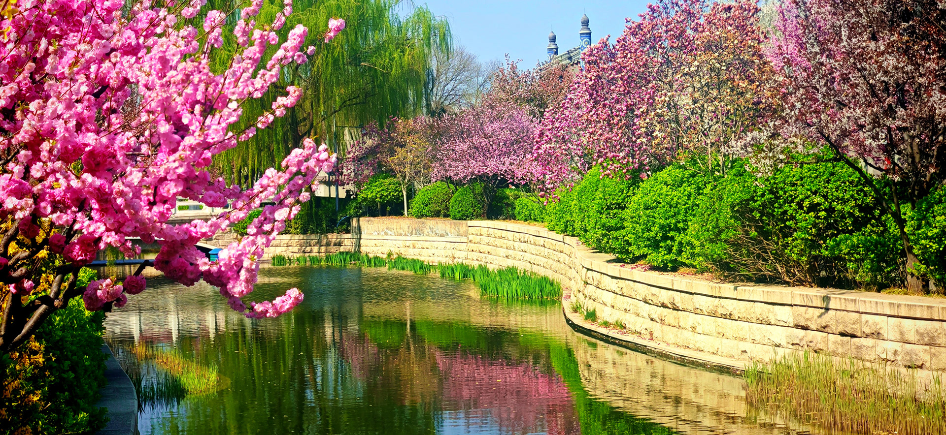 春风拂面,一脉碧水在春日里缓缓流淌。
