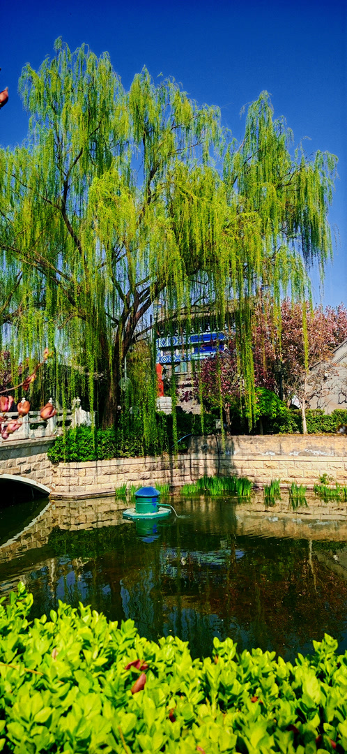 显然,北方的柳树,比南方的更显挺拔。新发的柳条鹅黄嫩绿,在春风中轻轻摇曳,偶尔拂过水面,惹起一圈涟漪。
