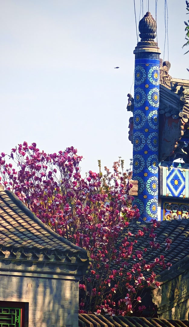 先看两岸建筑,错落有致,古意盎然。沿河的四合院民居,青砖灰瓦,门楼上的砖雕精致细腻——莲花、蝙蝠、如意纹样,依稀可见旧时手艺人的匠心。院落里偶尔探出一两株老枣树或石榴树,枝头刚冒新芽,透出浓浓的市井烟火气。走在巷子里,仿佛能听见老北京晨起遛鸟、午后下棋的声音。