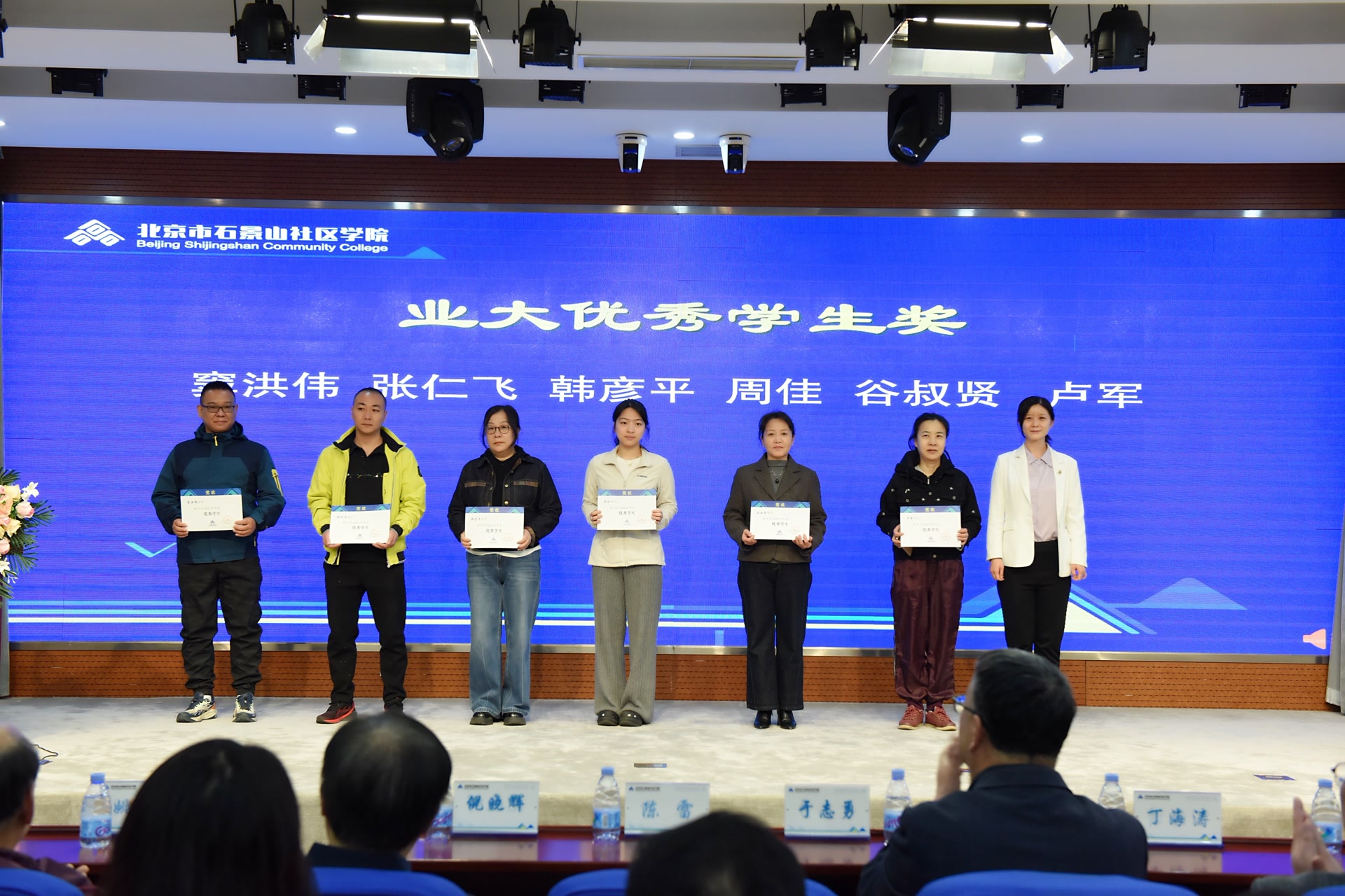 典礼现场对17名优秀学生、16名优秀班干部及赛事获奖同学表彰,颁发“学习之星”奖项表彰克服困难的新生代表。连续9年就读3个专科专业、第四次入学的续先同学,践行终身学习理念。