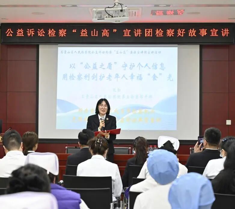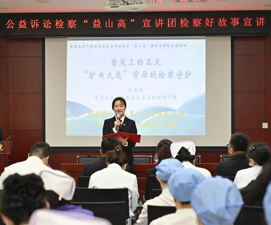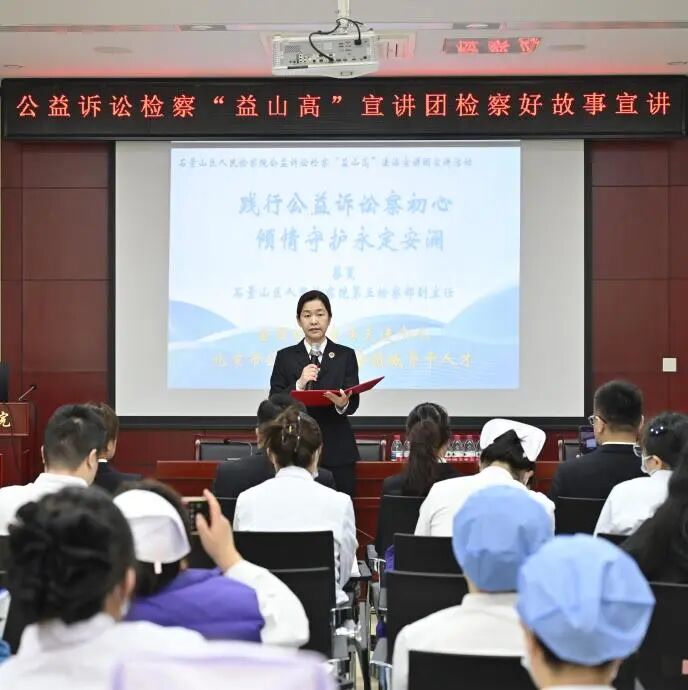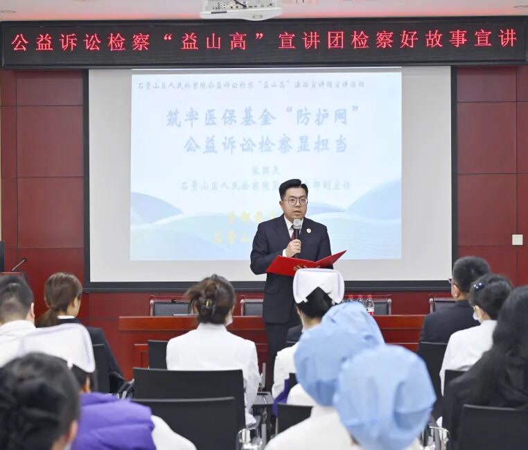 在世界卫生日来临之际,恰逢《医疗保障基金使用监督管理条例实施细则》于4月1日正式施行的重要节点,石景山区检察院“益山高”公益诉讼法治宣讲团走进石景山医院,专题分享公益诉讼检察办案好故事,以法治力量护航医疗卫生事业高质量发展,以检察履职守护人民群众民生福祉。