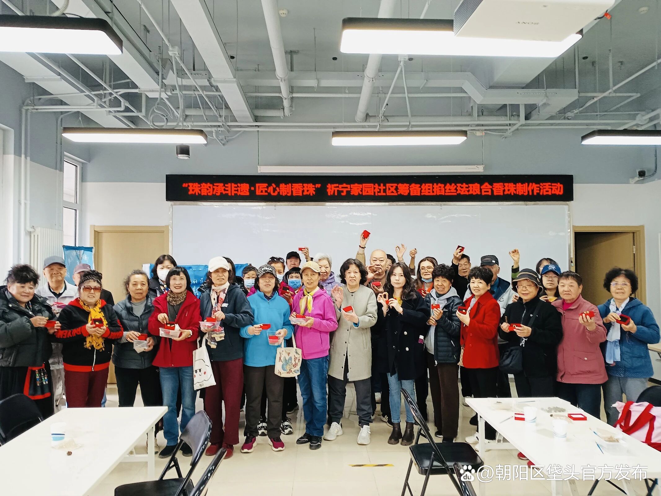 祈宁家园社区珠韵承非遗,匠心制香珠。为传承非遗手工技艺与传统香道智慧,增进邻里情谊,祈宁家园社区精心开展“珠韵承非遗・匠心制香珠”掐丝珐琅合香珠制作活动,带领居民沉浸式感受非遗文化的独特魅力。活动现场,专业老师细致讲解掐丝珐琅的传承渊源、合香珠的文化底蕴与养生功效,一步步示范合香调配、掐丝塑形、珐琅点缀、串珠成型等制作流程。居民们全神贯注聆听讲解,积极请教制作技巧,跟着老师的节奏耐心动手实践,细细打磨每一个细节,将传统香道与非遗技艺融入一颗颗精致的合香珠中。此次活动让非遗文化走进社区、贴近居民,既丰富了居民的业余文化生活,也筑牢了邻里温情纽带。