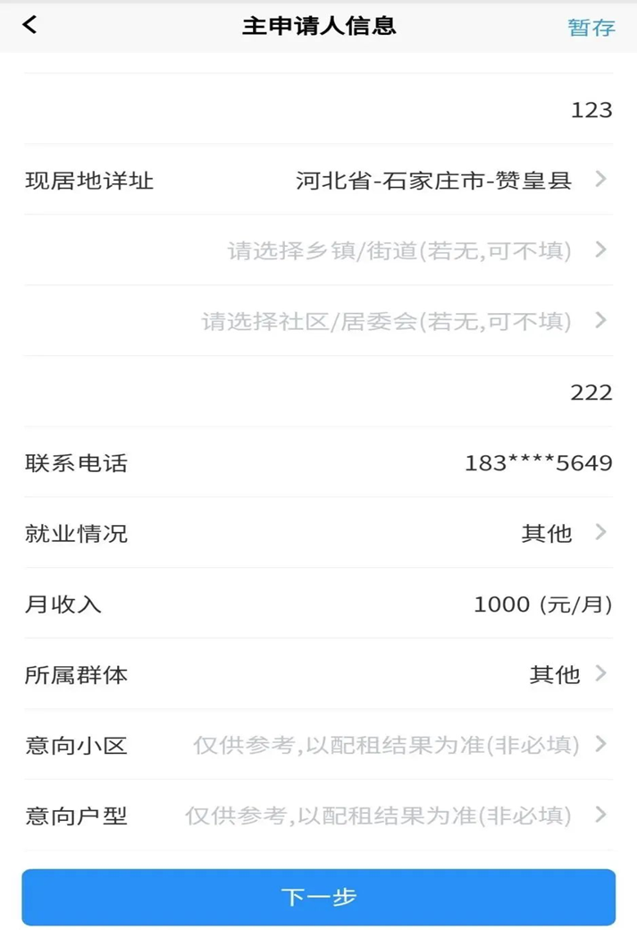 3. 申请人类型:一类保障家庭选择“城镇低保住房困难家庭”;二类保障家庭选择“城镇低收入住房困难家庭”;三类保障家庭选择“城镇中等偏下收入住房困难家庭”;外来务工人员选择“在城镇稳定就业的外来务工人员”;