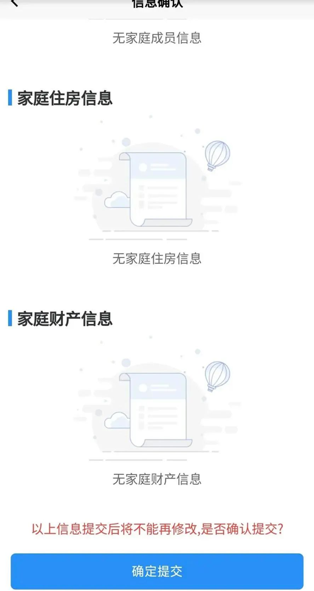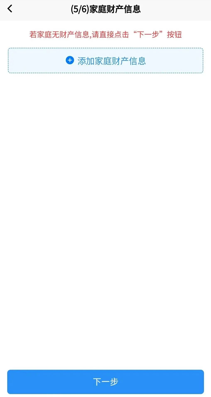 8.依次更新“主申请人信息”“家庭成员信息”“家庭住房信息”“家庭财产信息”。