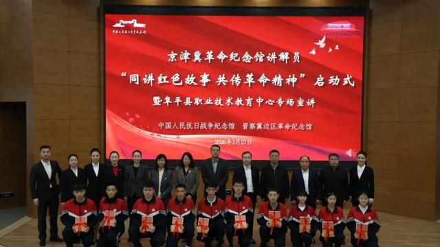 为落实京津冀宣传思想文化协同发展合作协议,深化红色场馆与馆校合作资源共享,构建红色文化赋能 “大思政课” 一体化发展格局,3月27日,由中国人民抗日战争纪念馆发起的京津冀革命纪念馆讲解员“同讲红色故事 共传革命精神”宣讲交流活动在河北阜平启幕。本次活动由中国人民抗日战争纪念馆联合晋察冀边区革命纪念馆主办,天津职业技术师范大学经济与管理学院、北京商贸学校、阜平县职业技术教育中心协办,300余名师生现场参与,沉浸式接受红色教育、感悟革命精神。