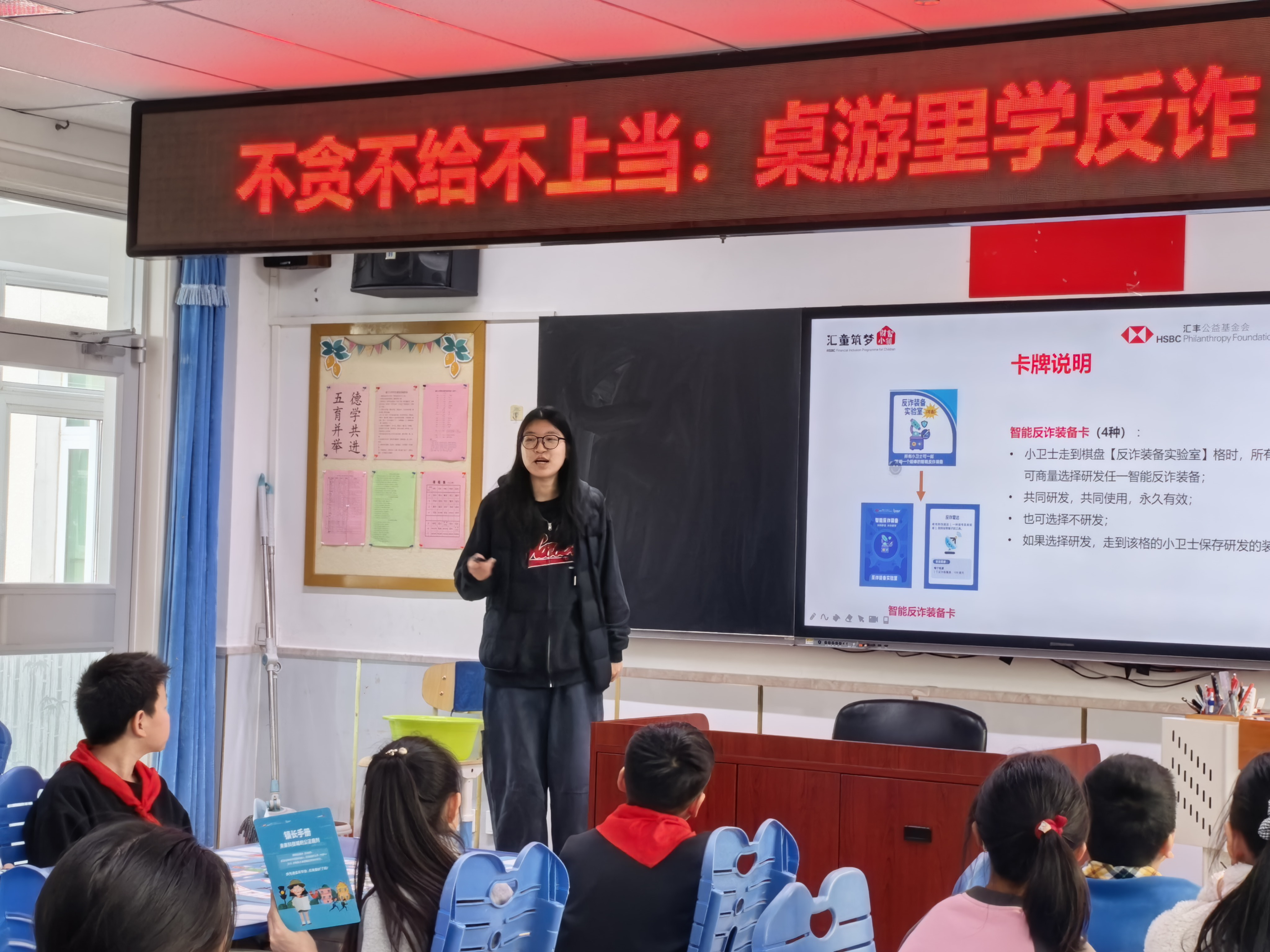 午后校园里趣味盎然,安全知识在欢声笑语中浸润童心。近日,北京市门头沟区城子小学开展 “汇童筑梦 — 财智小镇” 反诈主题桌游活动,本次活动由北京汇丰公益基金会支持、北京尚德社会组织服务中心执行,以 “游戏化学习 + 沉浸式体验” 为特色,把反诈教育、财商启蒙与校园安全教育融为一体,为同学们带来一堂生动有趣的安全实践课。