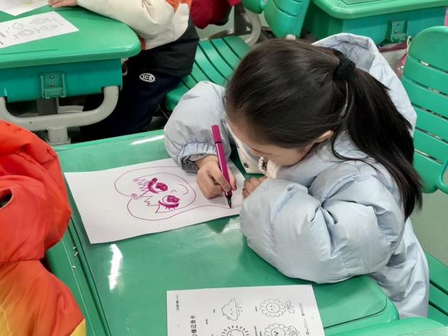 课程尾声,伴着舒缓柔和的背景音乐,孩子们拿起画笔创作专属自画像:有人特意勾勒出自己的单眼皮,有人为爱笑的嘴角画上可爱弧线,还有人在画像旁标注“勇敢”“爱思考”“喜欢画画”等专属标签。围坐分享环节,孩子们高举自己的作品,用稚嫩却响亮的声音喊出:“我和别人不一样,我喜欢我自己!”字里行间满是骄傲与自信。最后,每位同学认真填写心情记录卡,老师逐一与孩子贴心交流,对情绪低落的同学进行针对性心理引导,并用温暖的拥抱、个性化的鼓励,为本次课程画上圆满句号。