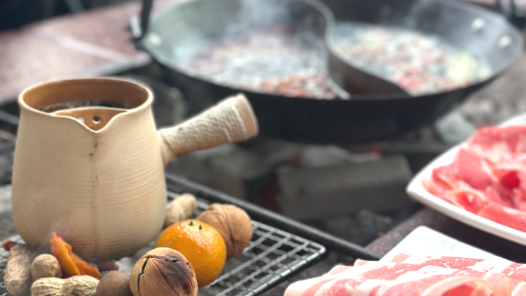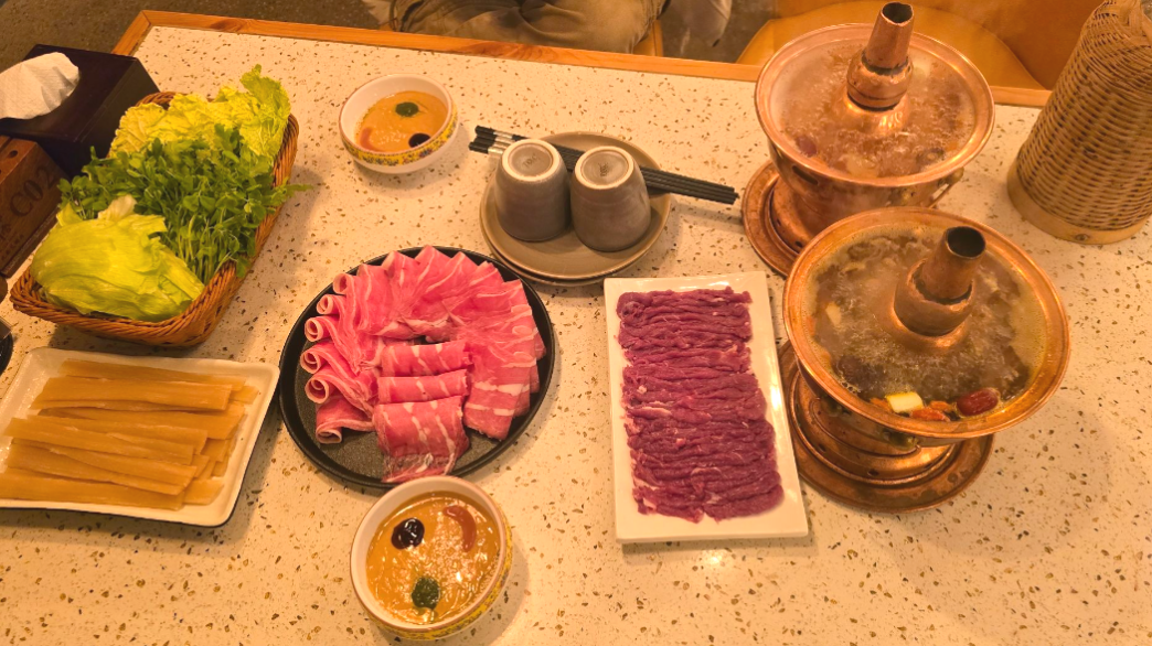 慕田峪美食街区的“涮肉担当”,铜锅清汤,肉质鲜嫩,搭配秘制麻酱,一口下去暖到心底。