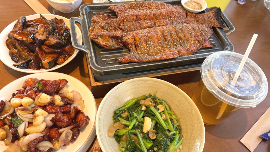 渔点小院环境清幽,以鱼鲜为核心,清蒸、红烧、炭烤虹鳟鱼/鲟鱼。
