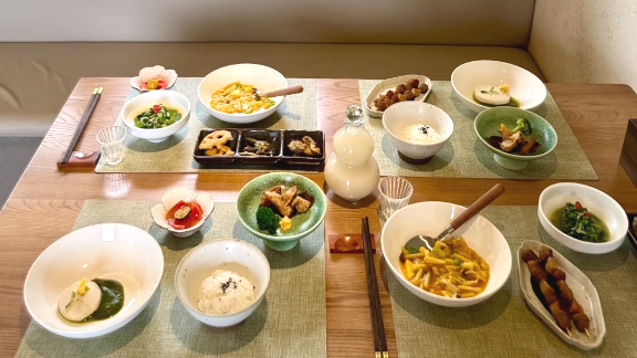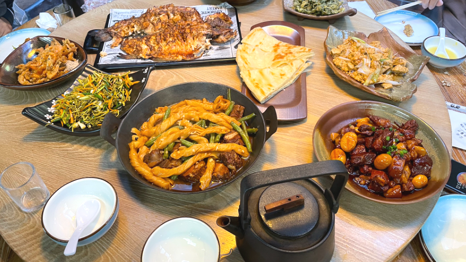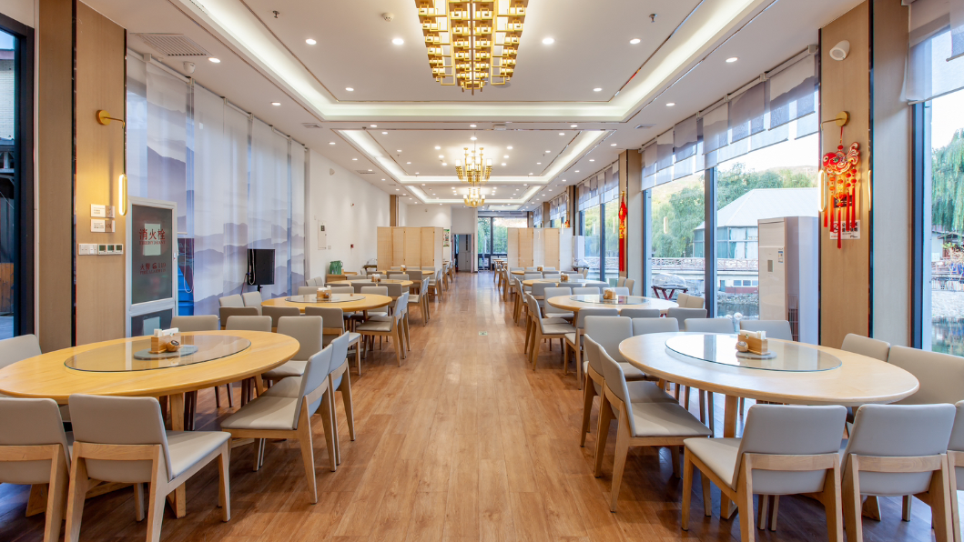 民宿配套的观景餐厅,临窗而坐,将湖光山色尽收眼底,食材新鲜,口味清淡,适合家庭聚餐。