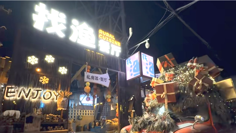 不夜谷网红打卡地,门口复古小车超吸睛。鳟鱼肉鲜嫩无土腥味;板栗红烧肉软烂入味,栗子甜糯;干炸小河虾香酥诱人,拍照超出片。