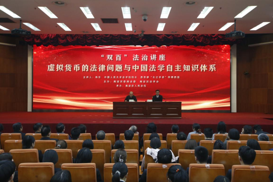 为扎实推进海淀区法治建设工作会议部署,落实“百名法学家百场报告会”的活动要求,2026年4月2日上午,海淀区委政法委(区法学会)在区法院成功举办“虚拟货币的法律问题与中国法学自主知识体系”法治讲座,由中国人民大学法学院院长杨东教授主讲。