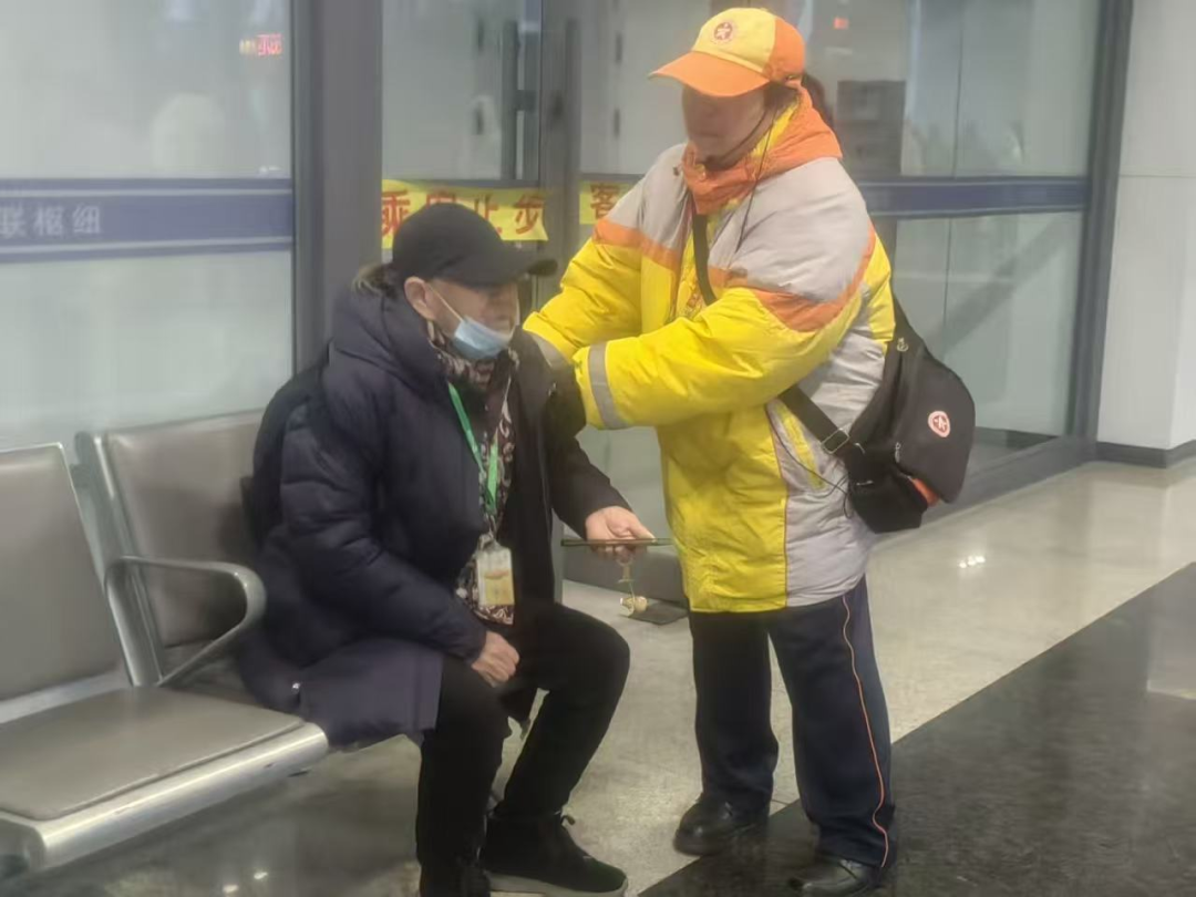 北七家中队的王少侠则是在天通苑北枢纽经历了一次“紧急大考”。那天,一名透析后手臂渗血的市民急需帮助,情况紧急,王少侠没有犹豫,俯身帮她擦拭血迹、小心处理针头,全程轻声安抚。事后,这位市民送来电子锦旗对他表示感谢。
