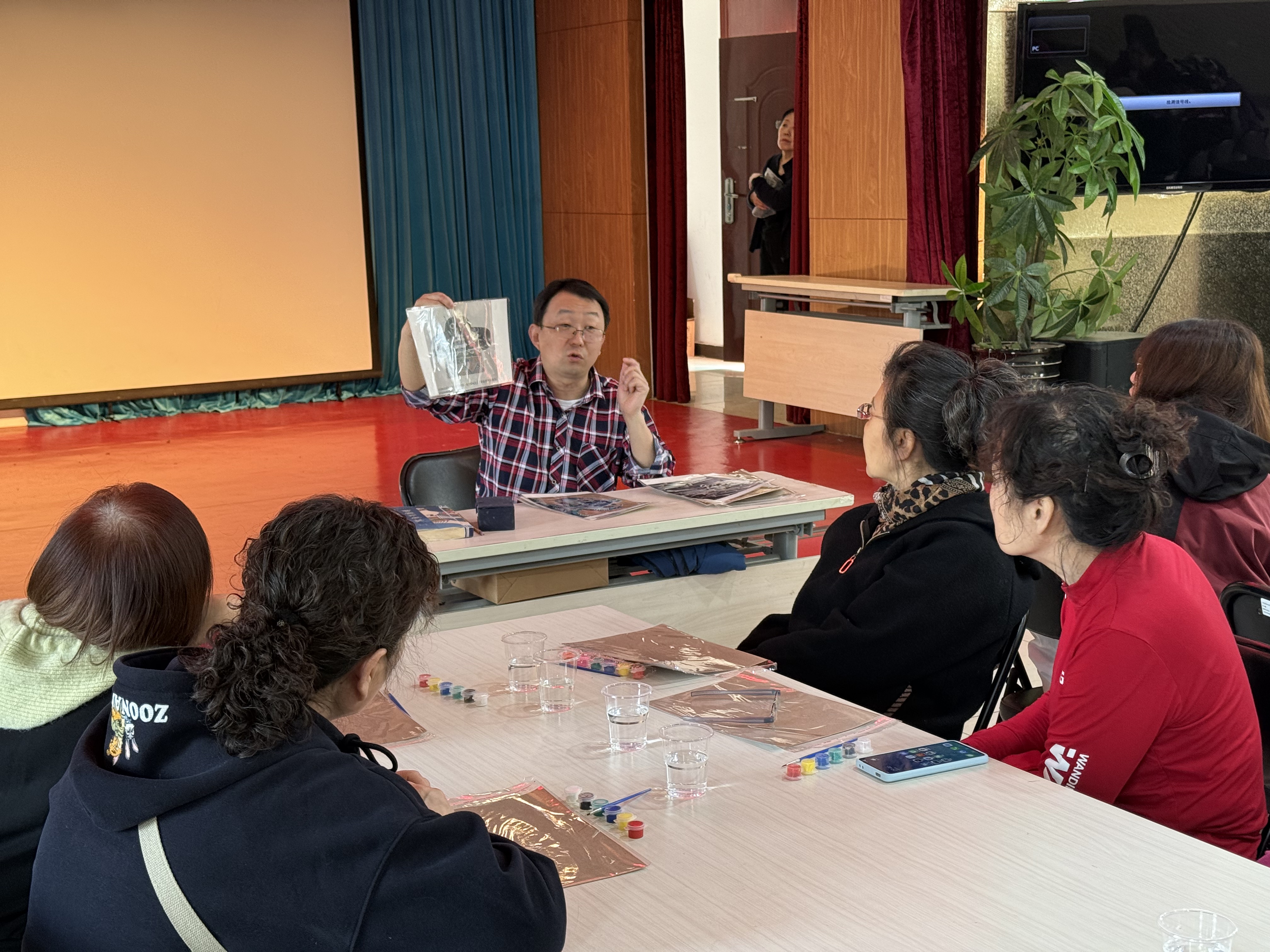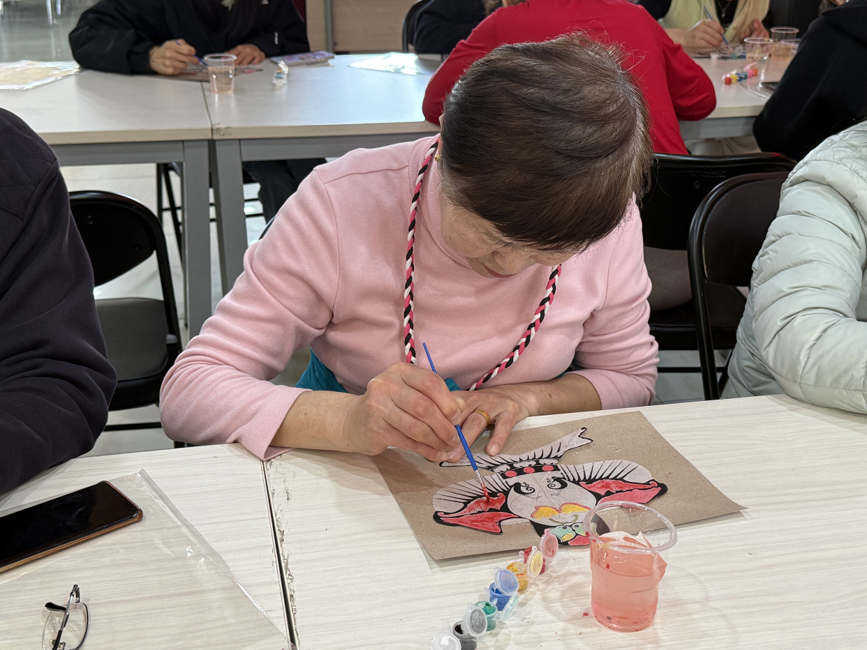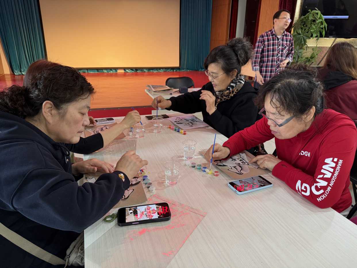 进入制作环节前,孙老师细数扎燕风筝“扎、糊、绘、放” 的四大核心技艺。从精选韧性十足的毛竹、削篾烤弯、扎制对称骨架,到选用轻薄宣纸细心裱糊、确保平整无皱,再到调配颜料、绘制传统吉祥纹样,每一步都充满匠心与讲究。在老师的耐心讲解与示范下,大家或屏息勾勒线条,或大胆填涂色彩,现场气氛热烈而温馨。