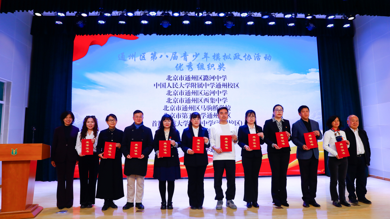 活动现场总结展示了通州区第八届青少年模拟政协活动成果。据介绍,本届活动首次吸纳小学高年级段学生参加,参与师生达万余人,形成模拟提案千余件,内容涉及教育、环保、文化等多个领域。611件学生模拟提案被推荐至区级,其中196件荣获区级奖项、8件荣获市级奖项。活动还评选出10个优秀组织单位、122名优秀指导教师。