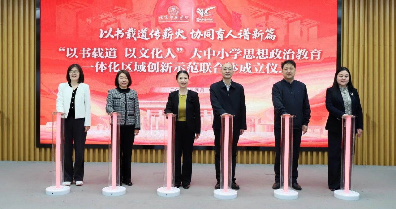 4月1日,“以书载道 以文化人”大中小学思想政治教育一体化区域创新示范联合体在北京印刷学院成立。联合体由北京印刷学院马克思主义学院牵头,联合大兴区多所中小学及北京地区若干纪念馆、博物馆共同创建。该联合体的成立既是推进大中小学思想政治教育一体化建设的务实行动,也是深化区域思想政治教育协同创新的积极探索。