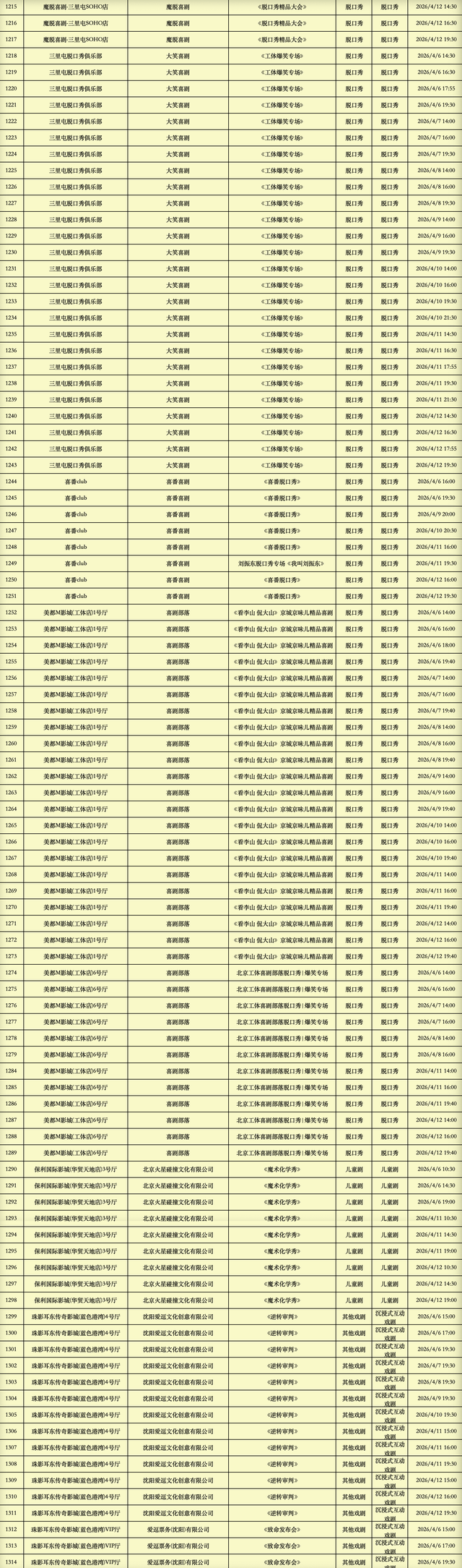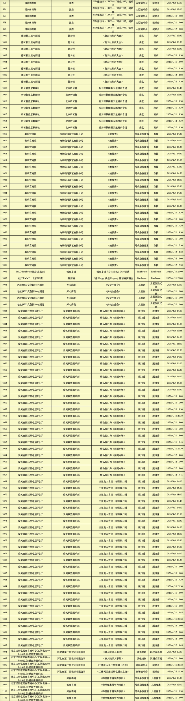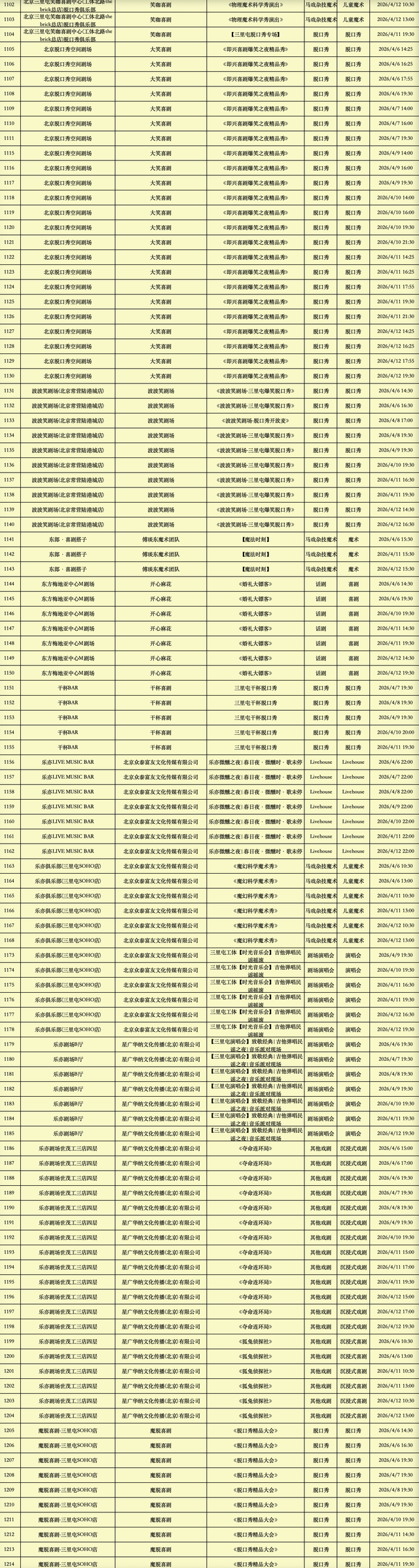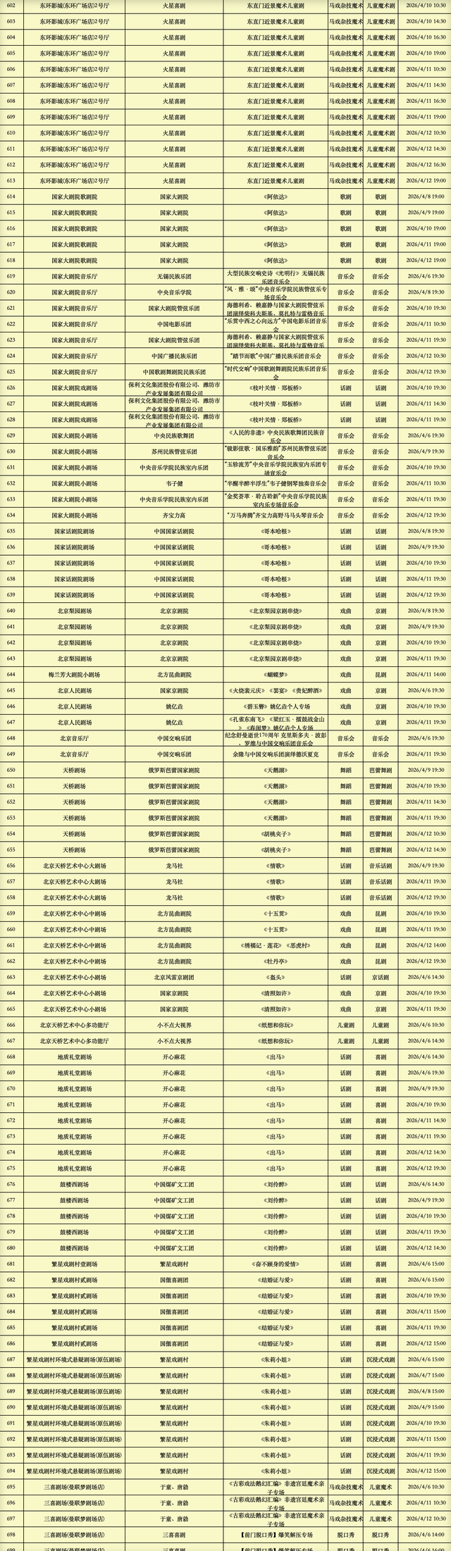 2026年4月6日-2026年4月12日北京商业演出信息新鲜“出炉”!话剧、喜剧、京剧、昆曲、北京曲剧、音乐剧、儿童舞台剧、儿童亲子剧、儿童木偶剧、儿童音乐剧、儿童剧、儿童魔术剧、儿童杂技、沉浸式戏剧、沉浸式喜剧、音乐会、演唱会、Livehouse、芭蕾舞剧、相声、评书、鼓曲、曲艺、二人转、脱口秀、综艺、杂技等一大波精彩演出来了,你想看的全都有,安排起来!(演出信息可能发生变化,以实际演出情况为准)