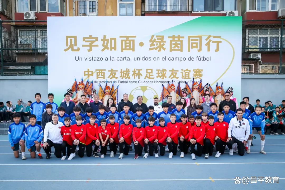 3月31日,以“见字如面·绿茵同行”为主题的中西青少年足球文化交流活动在昌平一中圆满举行。来自西班牙埃吾拉(EBORA)U15足球队全体成员与昌平一中师生齐聚一堂,以足球为媒,展开了一场别开生面的文化交流与青春对话。本次活动由市教委国际处、市国际教育交流中心、区政府、区友协、区教委、区外办、区体育局、区足协等多部门共同支持,旨在深化中西两国青少年在体育与文化领域的理解与友谊,推动校园足球国际化发展。
