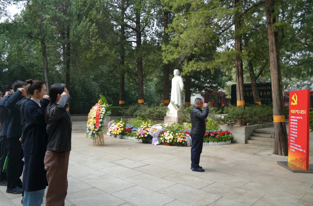 在陵园专业讲解员的带领与讲解下,全体人员怀着崇敬的心情缓步进入陵园,聆听李大钊同志为中国共产主义运动、马克思主义传播和中国共产党建立所作出的不朽贡献,深切感悟这位“铁肩担道义,妙手著文章”革命先驱的崇高气节。