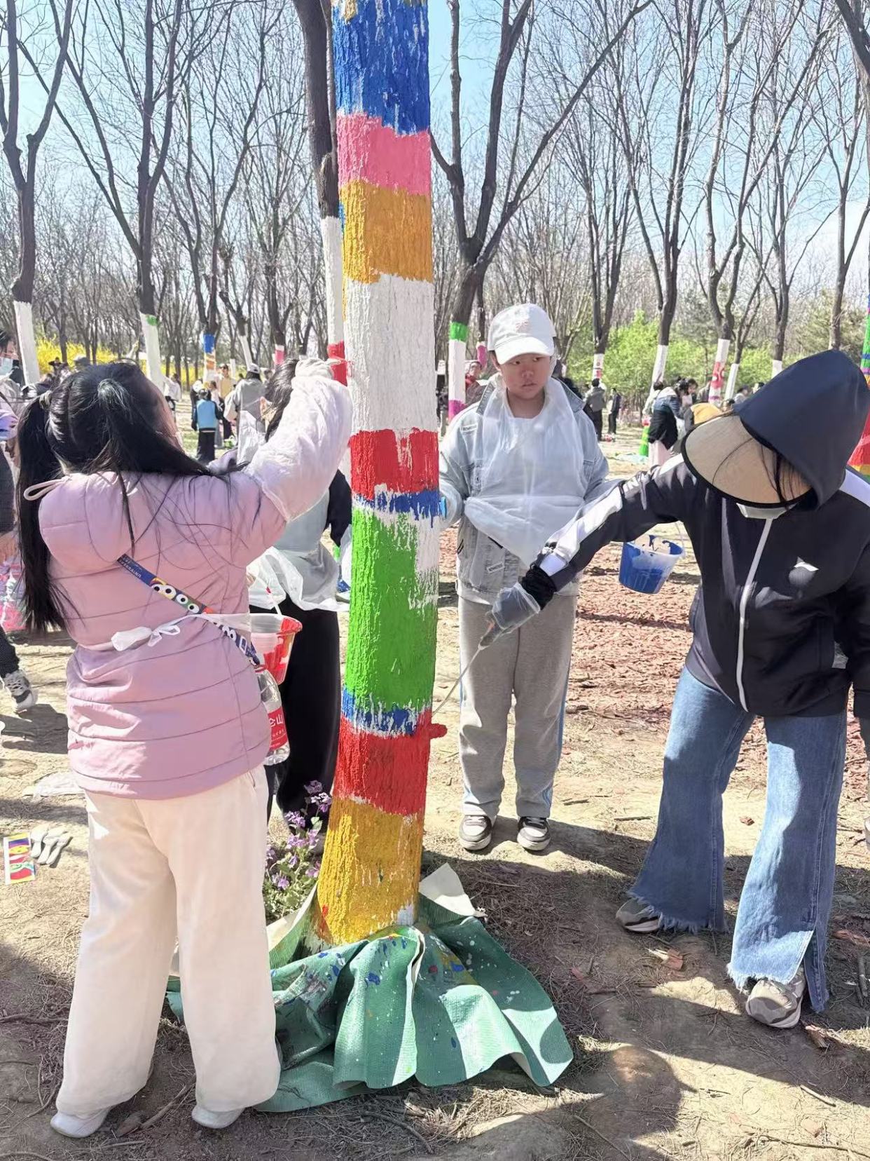 “孩子平时就喜欢画画,这次能和哥哥姐姐们一起在大树上画画,是个很新奇的体验,他特别认真。我们约定以后每年春天都来看看这棵树。”带着8岁儿子参加活动的李先生笑着说。沿着人民路进入园区,中央美术学院学生与百余名小学生及家长携手,正在以树干为画布,共同为200棵大树穿上早春的“花衣裳”,柔软多彩的大型花朵玩偶点缀其间,让大树迎来春日焕新。“这是我们在假期安排的一项特殊活动,希望不仅能给园区留下一片‘可以拥抱的森林’,更是一场人与自然的美妙对话。”