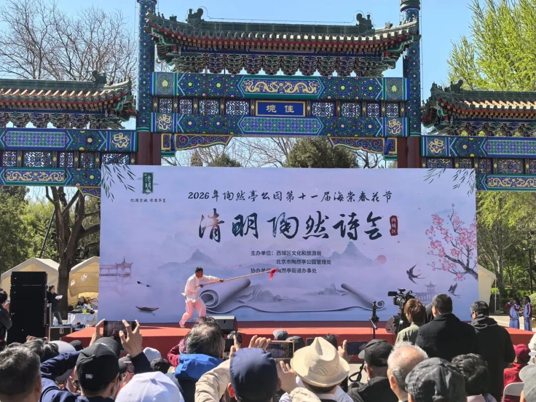 海棠绽艳满陶然,清思寄韵正清明。4月5日,由西城区文化和旅游局、北京市陶然亭公园管理处主办,陶然亭街道办事处协办的2026年陶然亭公园第十一届海棠春花节——清明陶然诗会在陶然亭公园举办。这场以清明为载体的文化盛宴,融慎终追远、缅怀先烈的家国情怀与春日赏新、传承民俗的生活意趣于一体,为市民游客带来兼具文化底蕴与精神温度的沉浸式体验。