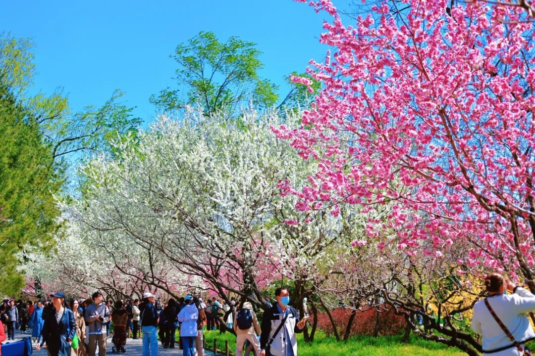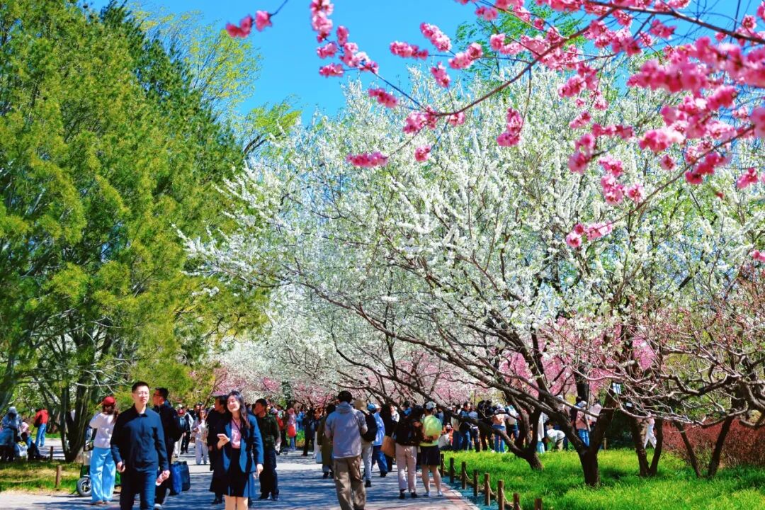春风拂面的清明小长假,正是出门踏青探春的好时节,踏入国家植物园(北园),桃花大道洁白与粉嫩两种花色交织成一片浪漫的花海。‘白花山碧桃’宛如春日里的素净精灵,微风拂过,簌簌飘落的花瓣,似一场温柔的“春雪”,为游人们染上一身春日的诗意。点缀其间的‘品虹’桃、‘品霞’桃则更添几分娇艳,层层叠叠的花瓣晕染着深浅不一的粉,在阳光下更显灵动。