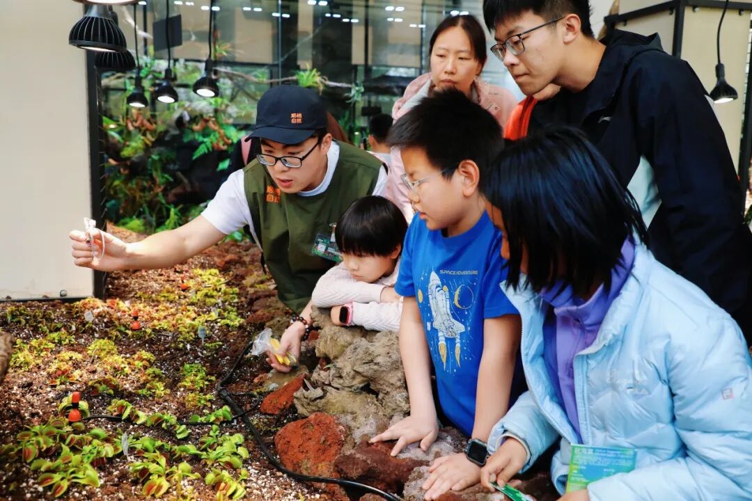 除了室外的春花盛宴,国家植物园低温温室同样藏着很多惊喜,为游客打造了一个不受天气影响的“动植物秘境”。“秋海棠区”“蕨世之森”“捕食者花园”三大主题展区,集中展示秋海棠、蕨类、食虫植物等500余种(含品种),爬宠、昆虫及两栖动物40余种,生动演绎着“万物共生”的生态智慧。多场科普讲解,带领游客们沉浸式感受动植物世界的神奇魅力。