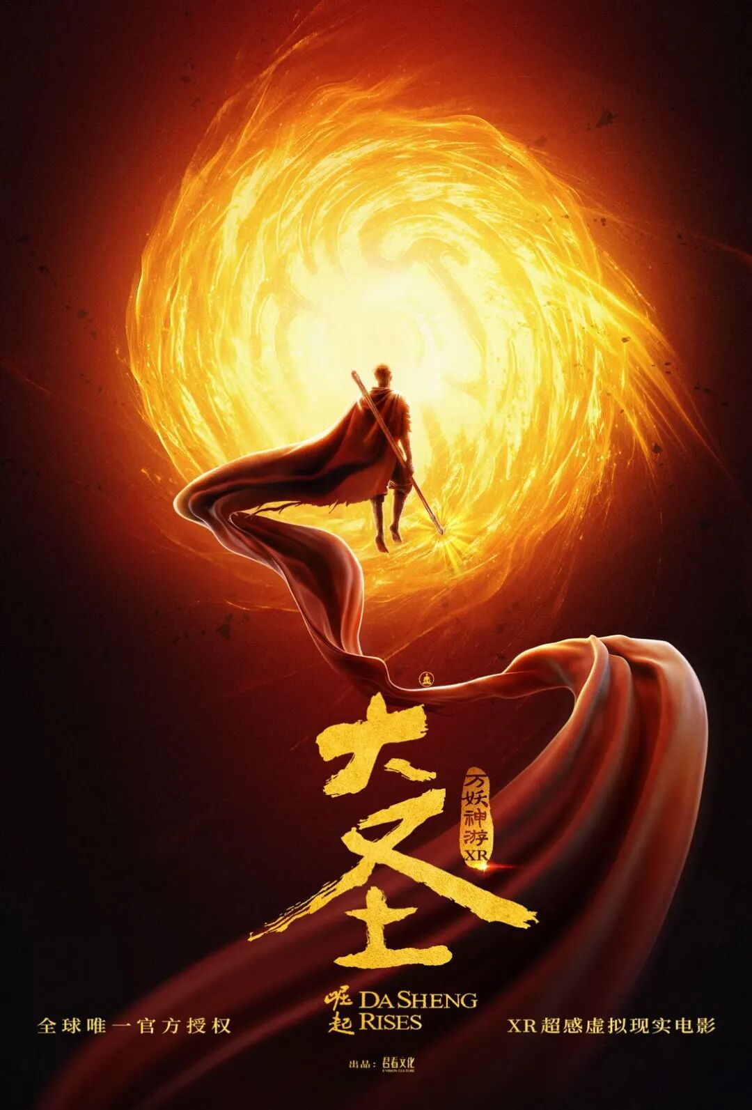 《大圣崛起之万妖神游》海报《大圣崛起之万妖神游》XR超感虚拟现实影片是由君看文化出品、动画电影《大圣崛起》官方唯一授权的沉浸式虚拟现实(XR)影片。作为国产国民级动画IP与前沿XR技术深度融合的标杆作品,《大圣崛起之万妖神游》深度延续了电影的经典世界观与精神内核。故事讲述了齐天大圣取经成佛后,群妖被封印于万妖山的万妖镇之中,妖族史官占出凶卦,预言大劫将至,唯有手持通卦印的山外人(玩家)可能破此死局。在花果山后裔猴小空与灵符桃符符的带领下,玩家化身妖怪参加万妖镇祭祖大典,见证天降异象,凶卦应验,为寻一线生机,众人闯入供奉妖族先祖的万神殿,向传说中的花果山七大圣求助。关键时刻,桃符符显灵,诸大圣法相现身,猴小空的赤诚勇敢唤醒了齐天大圣,众大圣化作金箍与面具碎片,在还魂师阿莫的提示下,线索指向孙悟空与六耳猕猴几百年未了的因果,手握残片,真相未明,猴小空将与玩家一同踏上新的冒险。