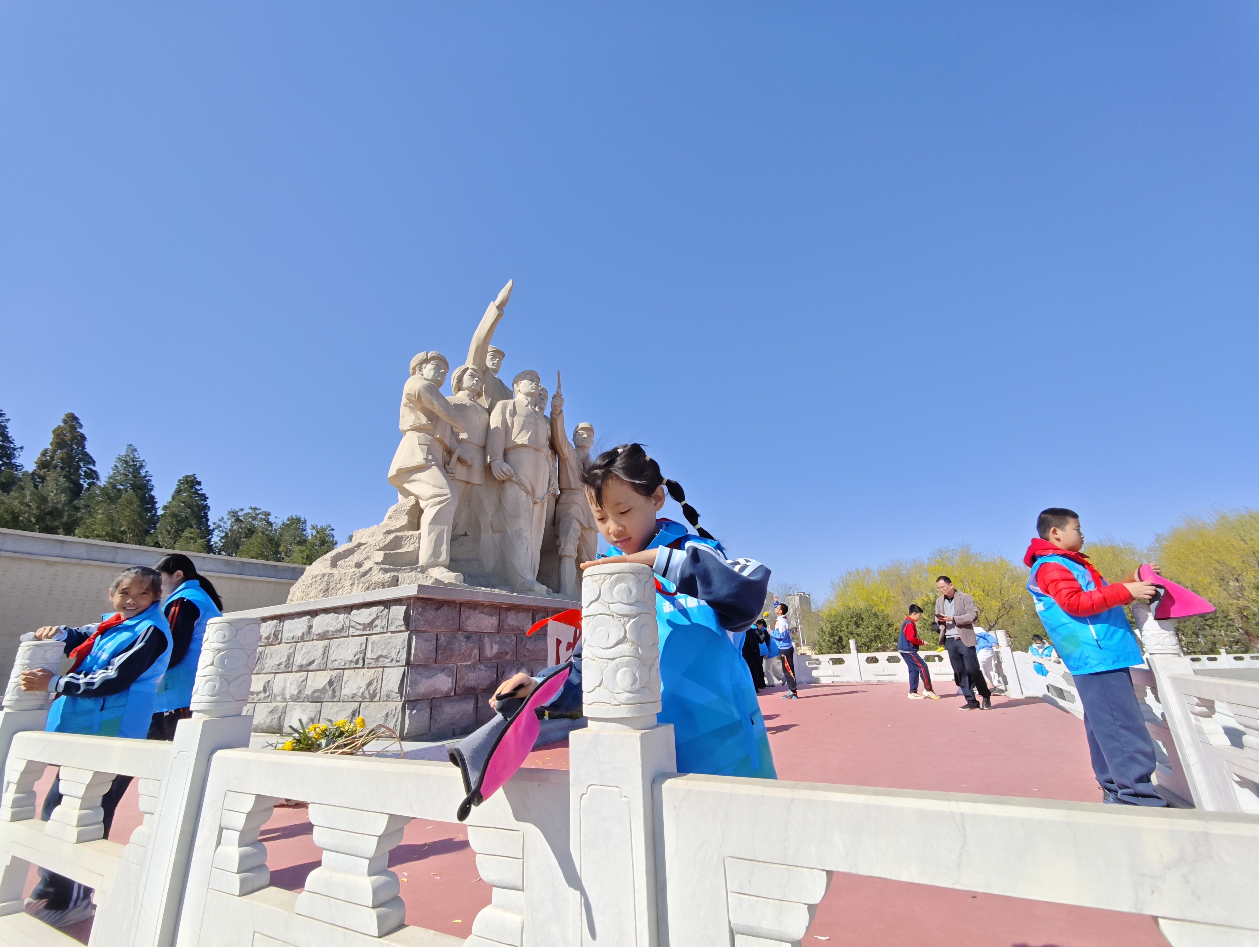 随后,党员志愿者高举右拳,面向党旗庄严宣誓,重温入党誓词。铿锵有力的誓言响彻陵园,既是党员对初心使命的坚定坚守,也为现场青少年树立榜样,让红色信仰在孩子们心中扎根生长。