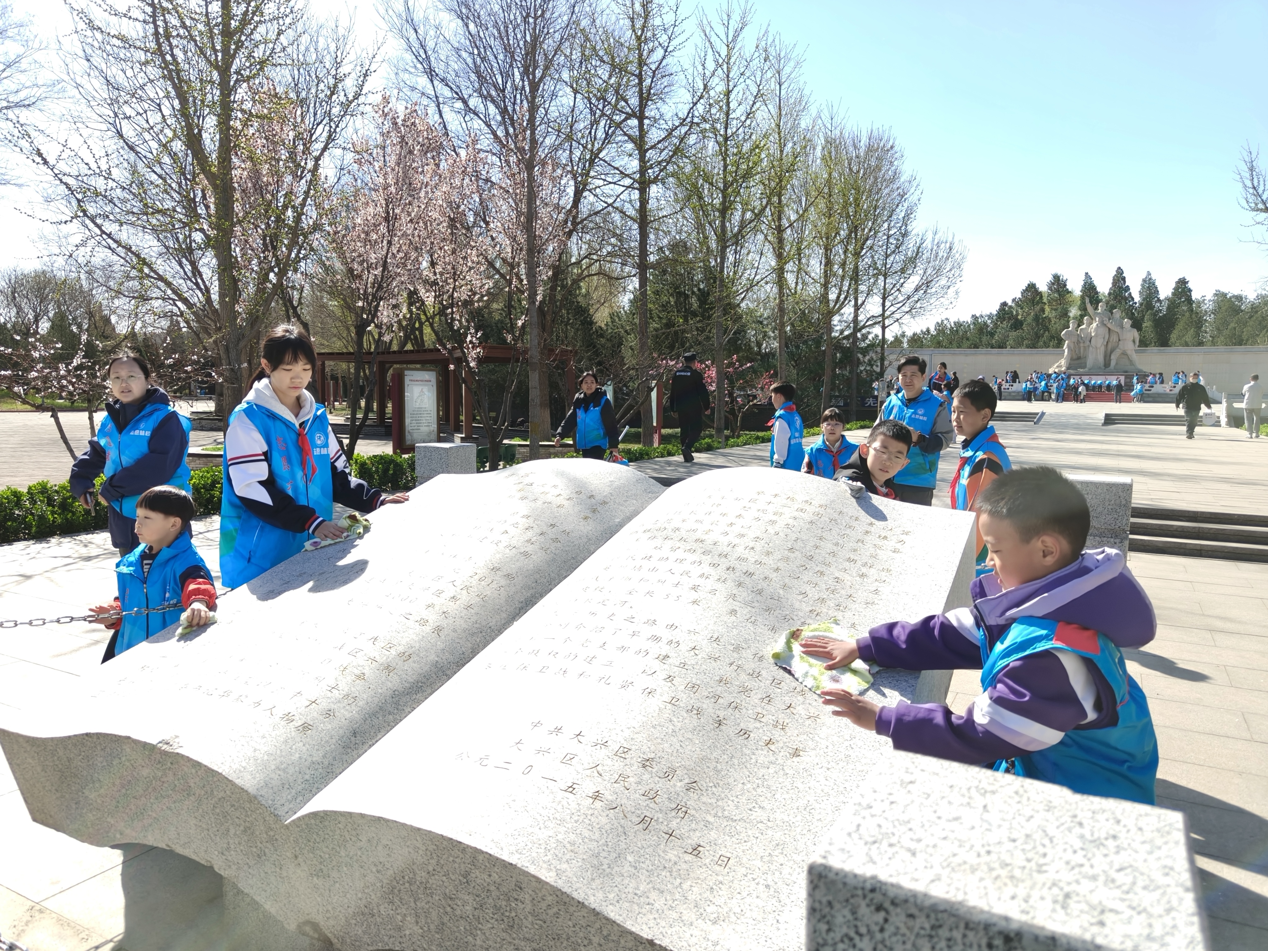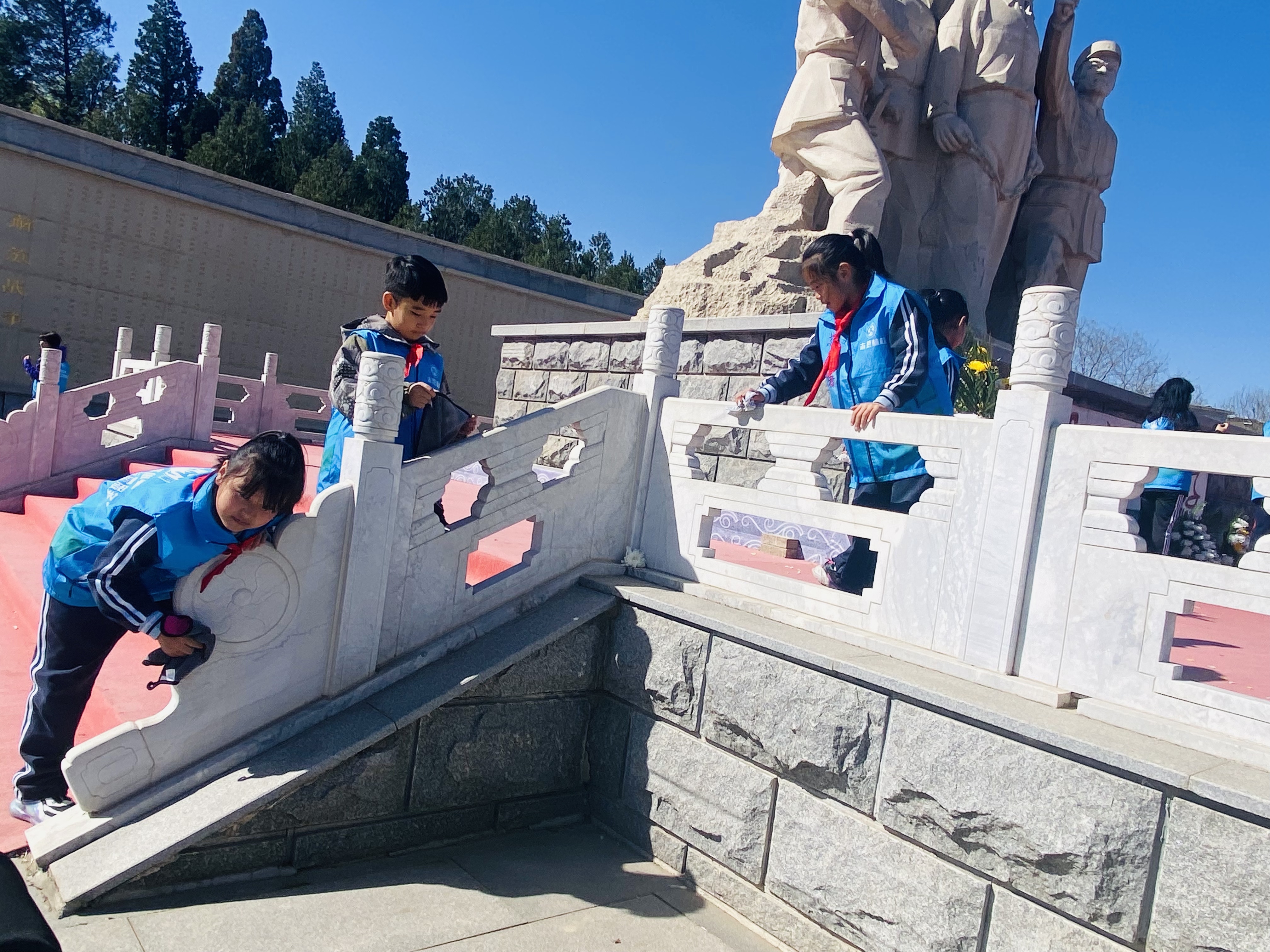 各志愿家庭还分工协作,手持清洁工具认真擦拭陵园护栏、雕像等设施。家长以身作则、率先垂范,孩子躬身践行、积极参与,以实际行动守护英烈安息之地,在实践劳动中体悟责任担当,倡导文明祭扫新风尚。