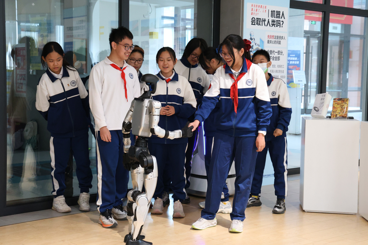 作为展览的“专属向导”,伴读机器人“小伴”以亲切的造型提供迎宾与导览服务,通过语音导航引导师生前往不同展区。搭载海量知识库的知识问答机器人则成为孩子们的“专属科普老师”。从“世界上第一台机器人是什么时候诞生的?”到“医疗机器人能做哪些手术?”,孩子们的问题接连不断。学校科学教师蒋一帆表示,知识问答机器人不仅提供了个性化的科普答疑,更引导孩子们养成主动提问、主动探究的学习习惯,“让科普知识从书本走向互动,真正入脑入心”。