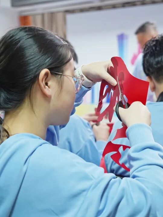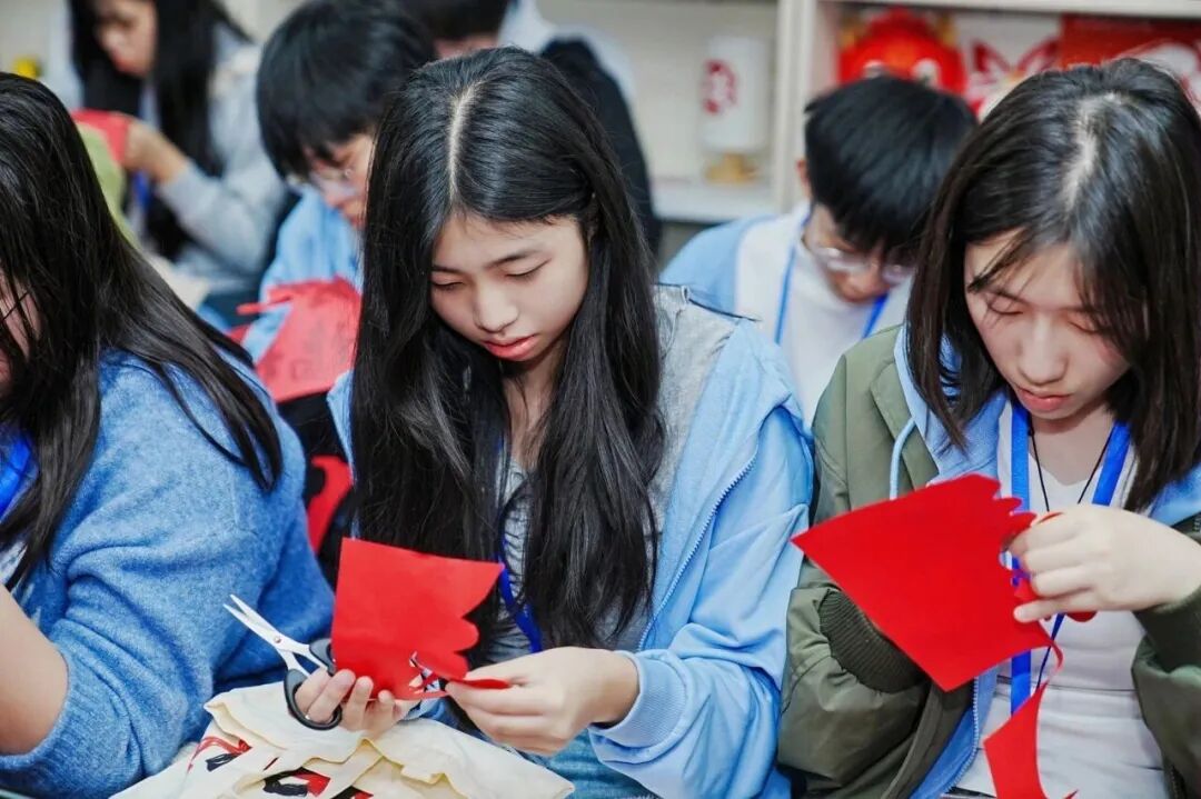 活动现场,非遗文化体验将气氛推向高潮。国家一级美术师、非遗剪纸传承人刘立宏老师现场教学,带领两地青少年共同制作“北京天下第一‘福’”剪纸作品。