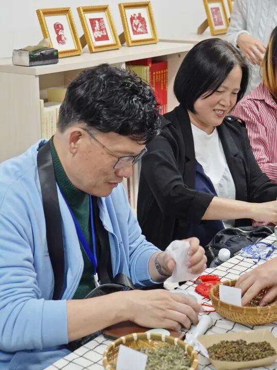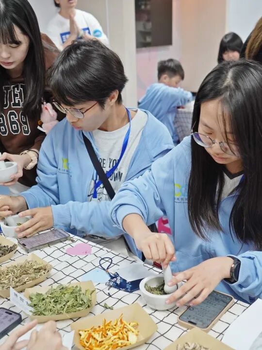 专业社会工作师王雨老师带领另一组青少年开展中药香囊制作体验,讲解中医药文化知识,让香港青少年在动手实践中感受中华优秀传统文化的独特魅力。两地青少年在互动中默契配合,将友谊与祝福融入作品之中。