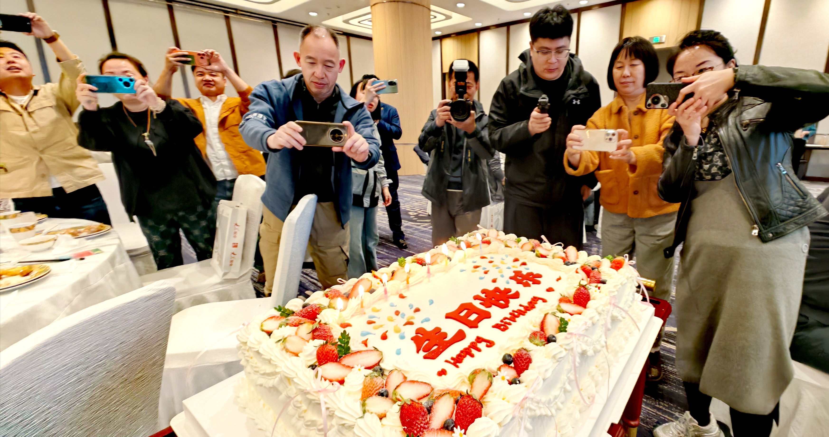 巧的是,正赶上参会的合肥日报记者张正朋生日。于是,东道主齐鲁晚报,悄悄为他准备了一块生日蛋糕。四十多位媒体同行,一起陪他过生日。