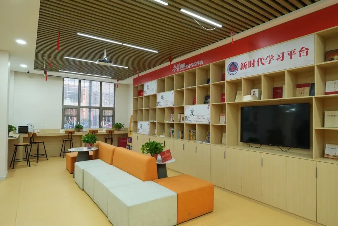 午后的阳光透过窗棂洒进党群服务中心的一角,柔软的沙发、温馨的卡座搭配护眼台灯,营造出安静舒适的氛围。每天下午放学后,都有不少小学生背着书包来到这里,挑选喜爱的课外书,安静伏案阅读、轻声交流分享,成为党群阵地里一道温暖的风景线。这里便是党群服务中心的学习强国线下平台,也是居民家门口触手可及的“精神充电站”。