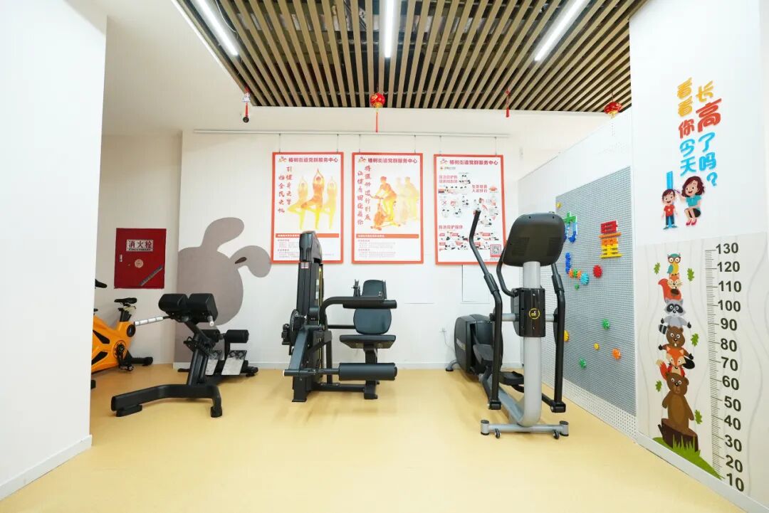 从学习充电到互助帮扶,党群服务中心的服务触角不断延伸,精准回应居民日常生活中的所需所盼。在新开设的健身区和儿童活动区,哑铃、动感单车、椭圆机等健身器械与儿童积木桌相对摆放,方便家长健身时随时照看玩耍的孩子,“健身带娃两不误”的贴心设计,收获了不少家庭的点赞认可。家长在健身区舒展身体,孩子则在一旁的儿童活动区安静地玩玩具。一动一静的温馨画面让党群服务中心成为居民放松身心、陪伴孩子的“暖心港湾”。