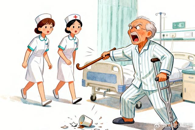 结果下午,陪护阿姨刚离开病房去打水,刘爷爷就犯了烟瘾,嘴里不停念叨着“抽根烟解解乏”。他翻遍了自己的行李,也没找到香烟和打火机——原来入院时,家属就把这些东西都收走了,怕他在病房里抽烟有危险。找不到烟的刘爷爷,瞬间就炸了,扯着嗓子嘶吼,还把病房里的杯子摔在地上,甚至举起拐杖,就要朝上前安抚他的我们挥过来。