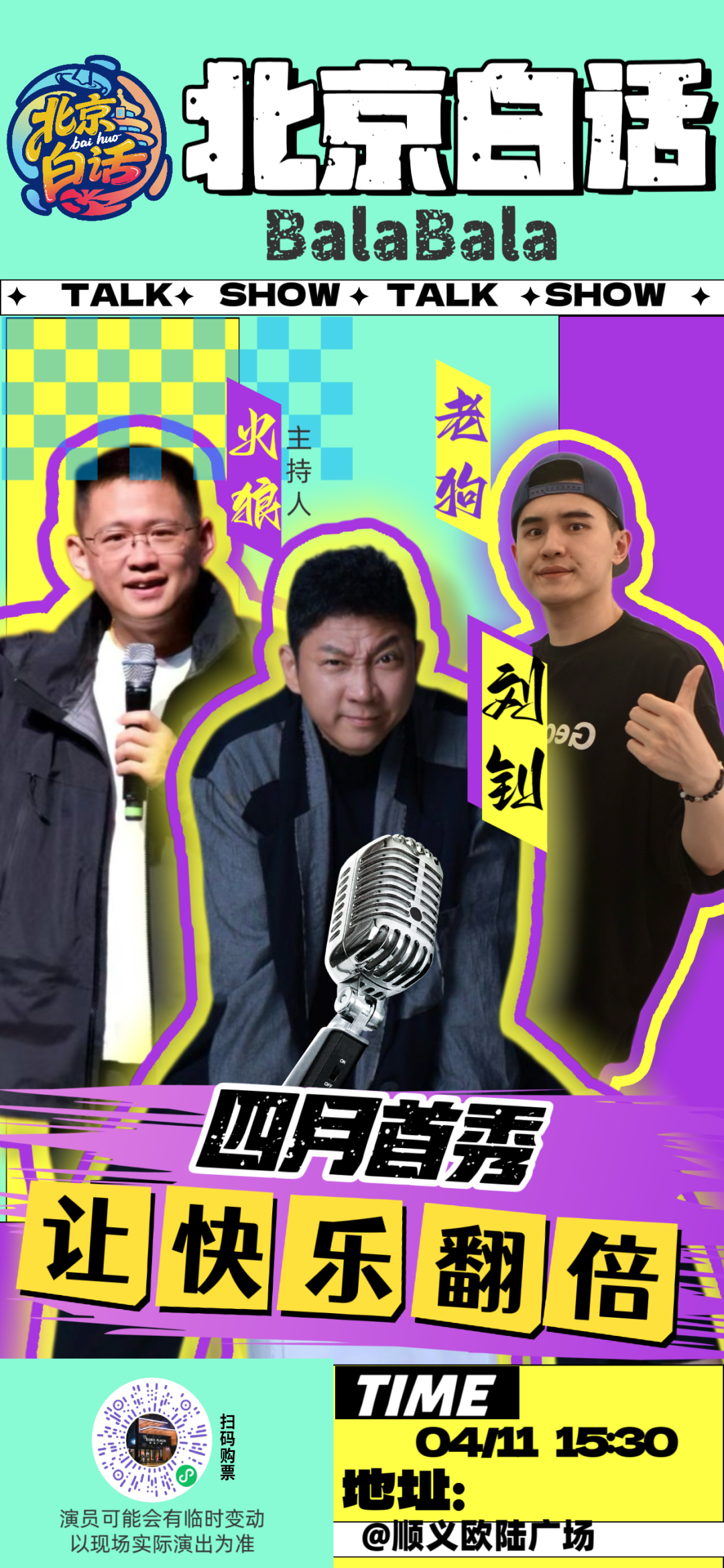 作为以北京方言为特色、融合本地文化元素的喜剧表演形式,北京白话脱口秀始终坚持接地气的叙事风格,用鲜活的市井段子、轻松的现场互动,把日常小事讲成欢乐故事,让观众在笑声中感受本土喜剧的独特魅力。