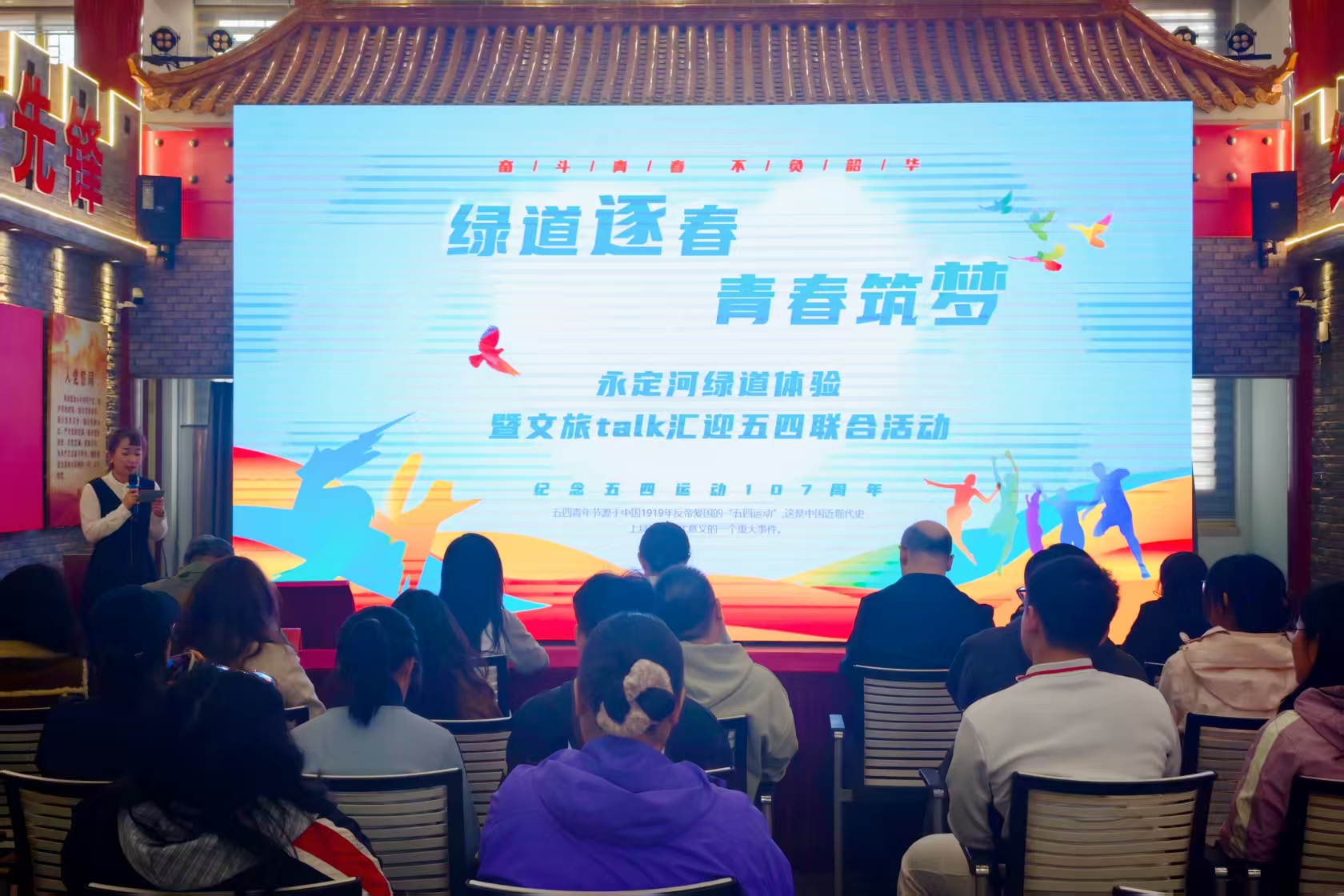随后在宛平党群服务中心举行的文旅talk汇上,三位榜样与青年深度交流。从战火硝烟到社区诊室,从楼宇党建到文旅融合,不同岗位的奋斗故事共同呼应了五四精神的内核。三位榜样用各自的人生轨迹,诠释了不同年代的青春担当。